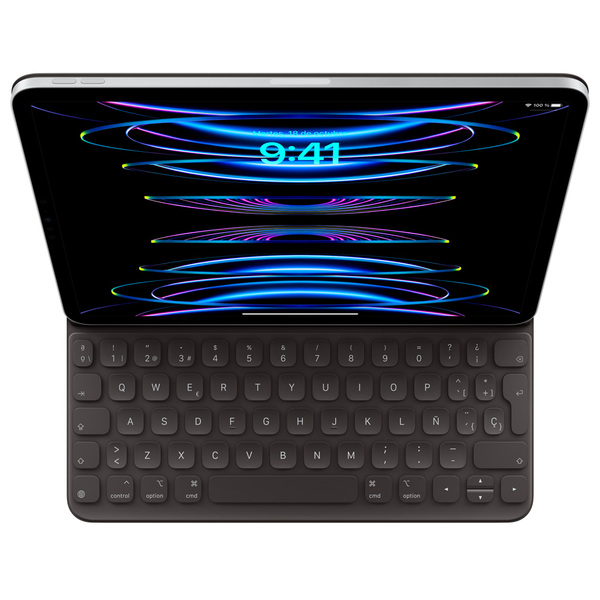 El Smart Keyboard es un cómodo teclado que te permite escribir un trabajo de la universidad o preparar una presentación cuando lo necesites. Conéctalo al iPad con facilidad, sin necesidad de enlaces ni enchufes, y ponte a trabajar. Cuando termines, pliégalo para convertirlo en una cubierta delgada y liviana.