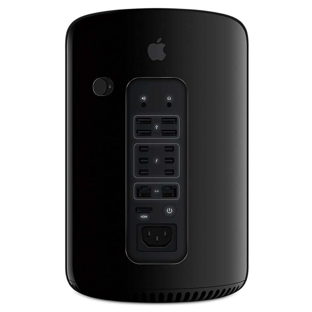 El Mac Pro de es una poderosa estación de trabajo diseñada por Apple para usuarios profesionales que requieren un rendimiento excepcional en tareas intensivas, como diseño gráfico, edición de video, renderizado 3D y desarrollo de software avanzado. Este modelo se distingue por su innovador diseño cilíndrico, que contrasta con las torres tradicionales de otras computadoras de escritorio. En su interior, alberga una arquitectura de vanguardia con hasta 12 núcleos de procesamiento, memoria RAM ECC de alta velocidad y dos GPU avanzadas para ofrecer un rendimiento gráfico excepcional. Además, su capacidad de expansión se destaca gracias a la introducción del revolucionario sistema Thunderbolt 2, que permite la conexión de periféricos de alta velocidad, ofreciendo así una solución completa para las demandas de los profesionales creativos.